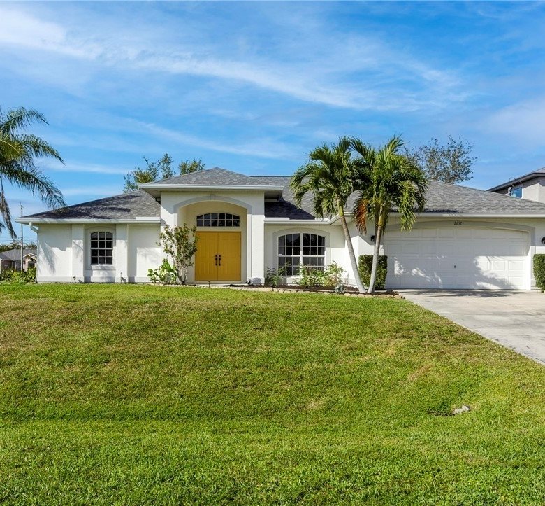 Modern 3-bedroom, 2-bath home in Cape Coral’s Surfside neighborhood featuring an open floor plan, vaulted ceilings, upgraded kitchen with granite countertops, stainless steel appliances, and plank tile flooring. Spacious fenced backyard on a corner lot, new roof, and 2-car garage. Close to parks, marinas, and shopping.